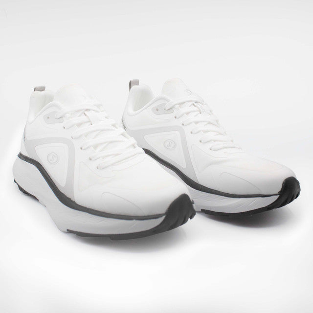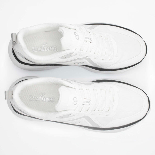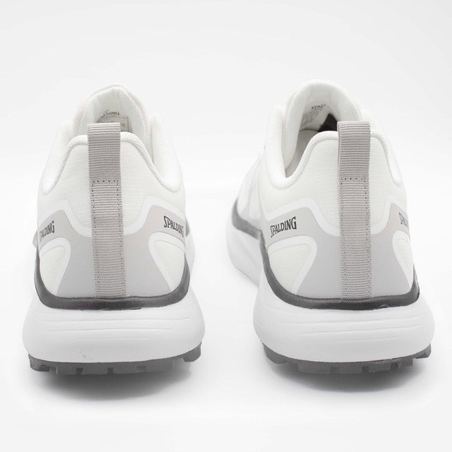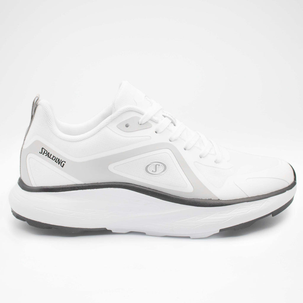 Men’s Spalding all-day shoes featuring a clean white design with subtle black accents, a supportive build, and a cushioned sole for comfortable everyday wear.