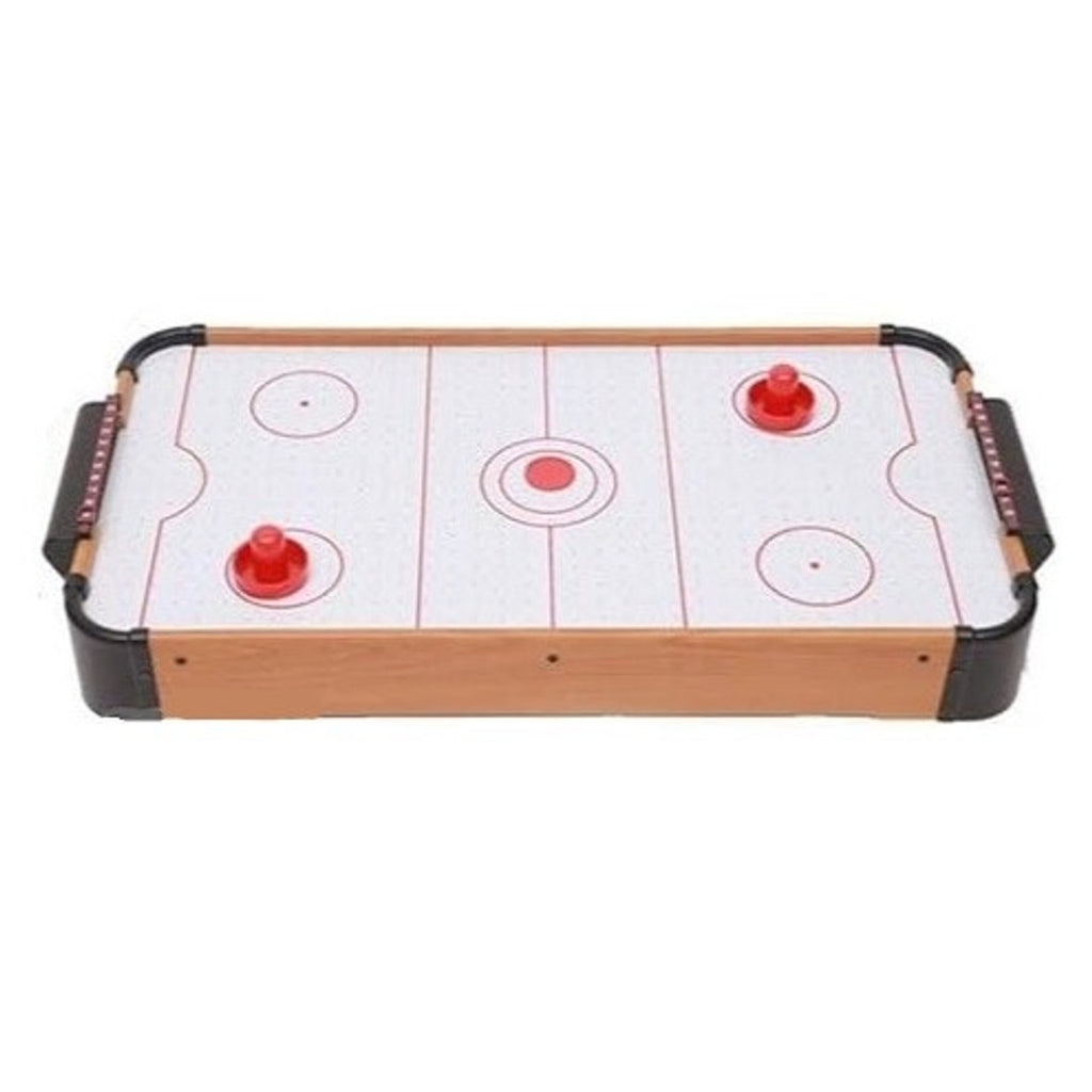 Bring endless fun home with this kids' air hockey table! Built with sturdy wood construction for lasting play, it features a battery-operated, powerful fan that keeps the puck gliding smoothly. It includes score counters for both players and comes complete with 2 paddles and 2 pucks. Perfectly sized at 69 x 37 x 10 cm, it's great for any game room or play area. (Batteries not included.)