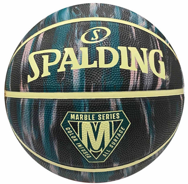 The Spalding Marble Series basketball features a bold Taupe/Mauve/Teal marble design. Made from durable rubber for all-surface play, it delivers reliable grip and long-lasting performance on any court.