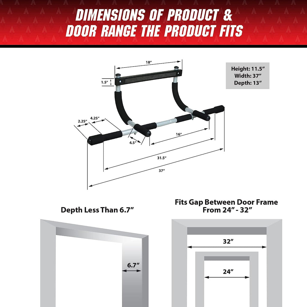 • This Upper body workout has been designed to fit residential doorways from 61 cm to 81 cm wide with doorway trim up to 91 cm wide