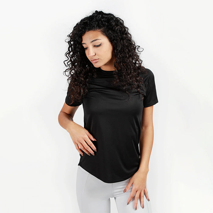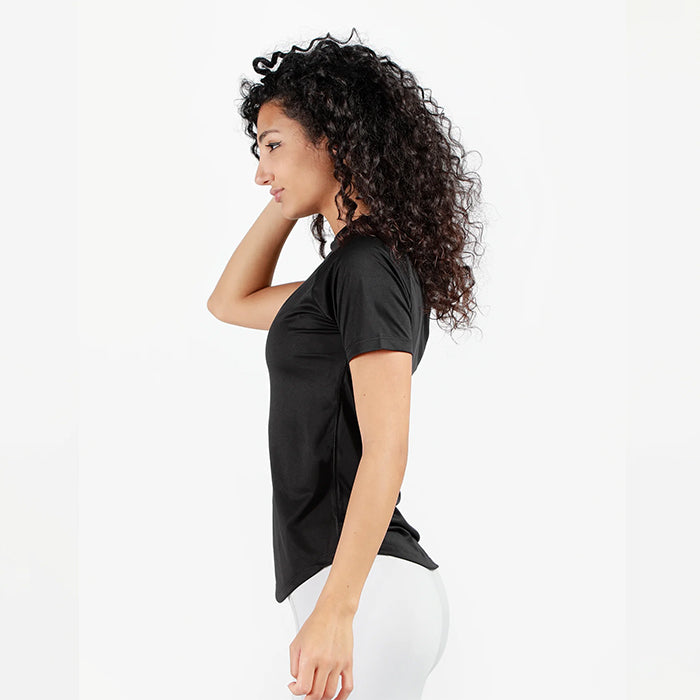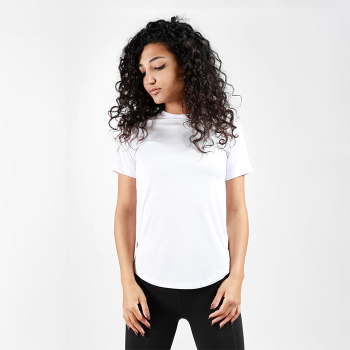 Our performance t-shirts are incredibly soft and lightweight, so comfy you'll forget they're gym wear. The scoop-cut hem and feminine silhouette are perfect for stretching, weightlifting, or just lounging around. Ladies, wear this out and shine like the star you are!
